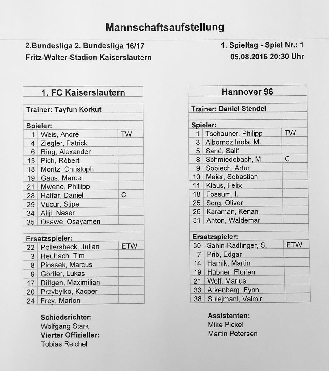 Betreff des Beitrags: Re: 1. FC Kaiserslautern vs Hannover 96 (vor dem Spiel) Verfasst: 05.08.2016 17:49 |
