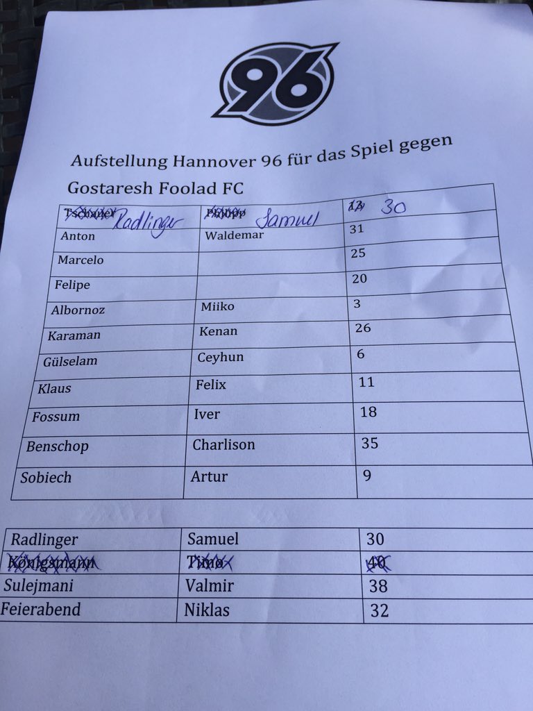 Hier die Aufstellung gegen Gostaresh. Wenn Schaaf wieder komplett durchwechselt, wäre die Aufstellung ggn Stuttgart dann diese: Zieler - Sakai, Hoffmann, Schulz, Sorg - Sané, Yamaguchi - Prib, Schmiedebach, Bähre - Szalai